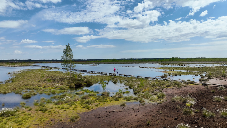 Kūdras ieguves teritorija, kur priekšplānā uzsākta rekultivācija – purva atjaunošana